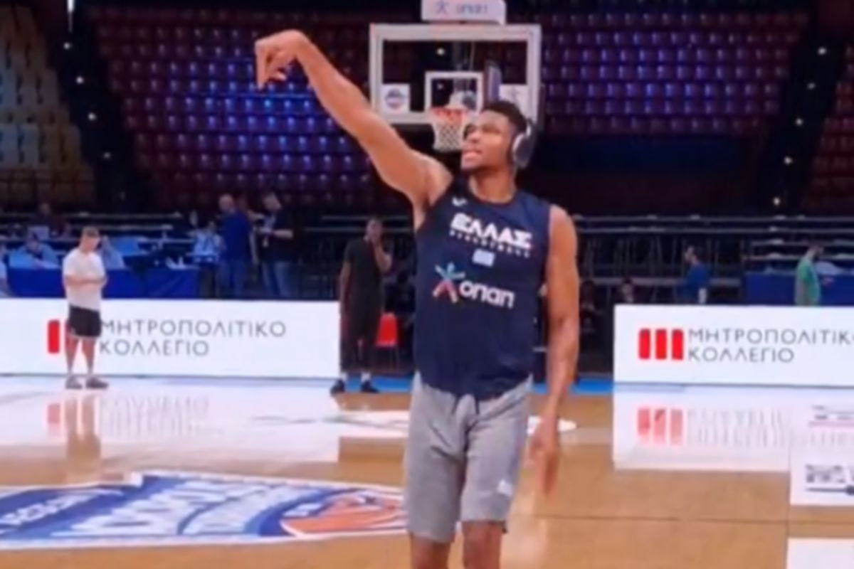 Μάλιστα, ο Αντετοκούνμπο βγήκε στο παρκέ του Σταδίου Ειρήνης και Φιλίας με μέλος του σταφ των Μιλγουόκι Μπακς, τον Βιν Μπέικερ, για να κάνει την προθέρμανσή του περίπου 90 λεπτά πριν από το τζάμπολ της αναμέτρησης.