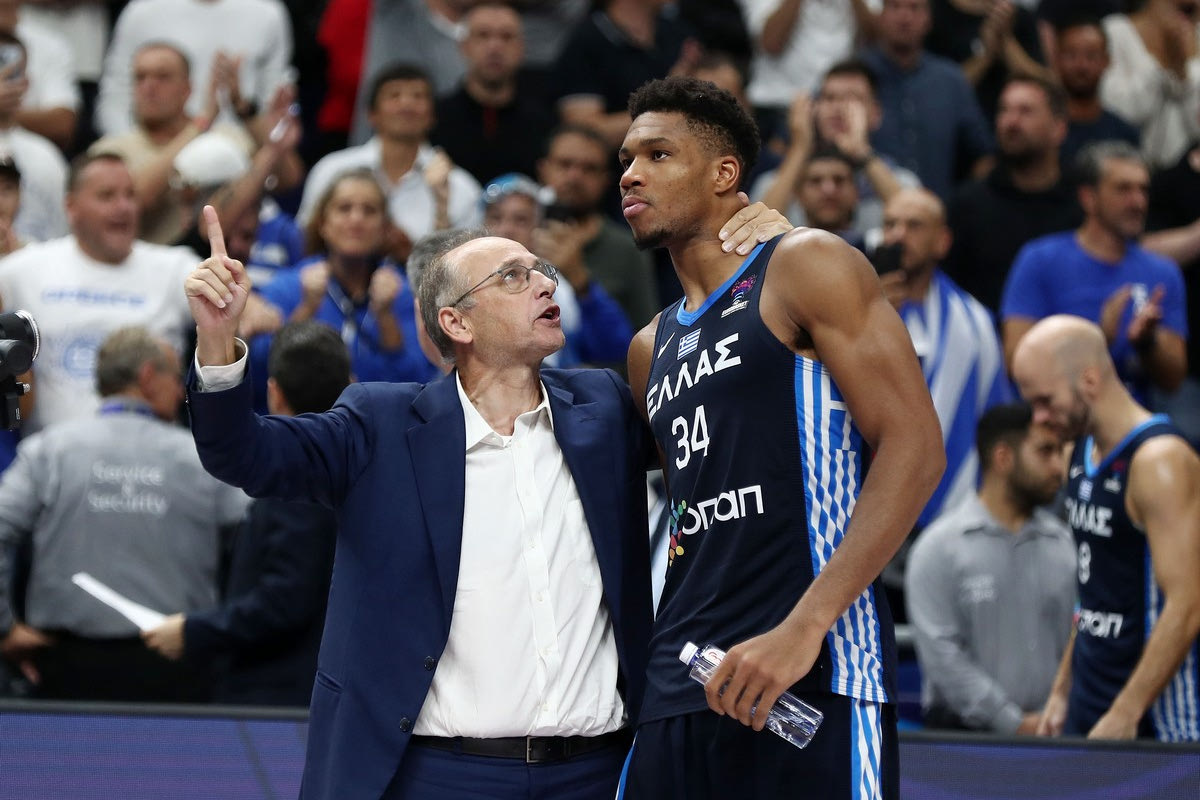 Ο Βαγγέλης Λιόλιος βρέθηκε στο πλευρό της Εθνικής στο Βερολίνο και μετά από τον αποκλεισμό αγκάλιασε και συνομίλησε για λίγο με τον Γιάννη Αντετοκούνμπο.