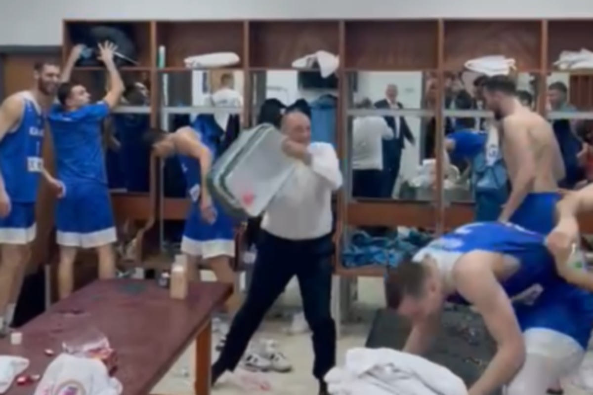 Ο Βαγγέλης Λιόλιος εισέβαλε στα αποδυτήρια της Εθνικής και μπουγέλουσε τους πάντες, με τους παίκτες να ανταποδίδουν. Ξέφρενοι πανηγυρισμοί από τους διεθνείς.