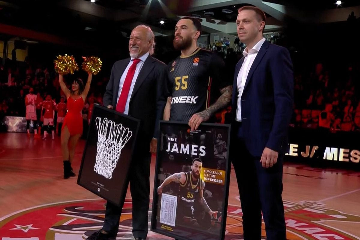 Η EuroLeague τίμησε με μια ξεχωριστή τελετή, πριν από το τζάμπολ του αγώνα ανάμεσα σε Μονακό και Αρμάνι Μιλάνο, την ανάδειξη του Μάικ Τζέιμς σε πρώτο σκόρερ στην ιστορία της διοργάνωσης.
