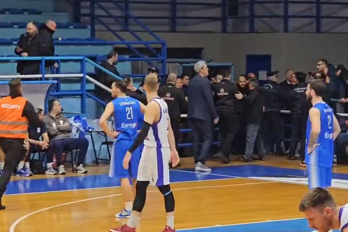 *Q4 8:35 Με το του έγινε η δεύτερη επίσημη προειδοποίηση, από την πλευρά των φιλάθλων της Α ομάδας έγινε ρίψη αντικειμένου μέσα στον αγωνιστικό χώρο (κουτάκι μπύρας αλουμινίου γεμάτο). Ο αγώνας διεκόπη και οι διαιτητές κατευθύνθηκαν στα αποδυτήρια και δόθηκε εντολή για εκκένωση του γηπέδου. Ο αγώνας διεκόπη για 30 λεπτά μέχρι να γίνει η εκκένωση και μετά συνεχίστηκε”.