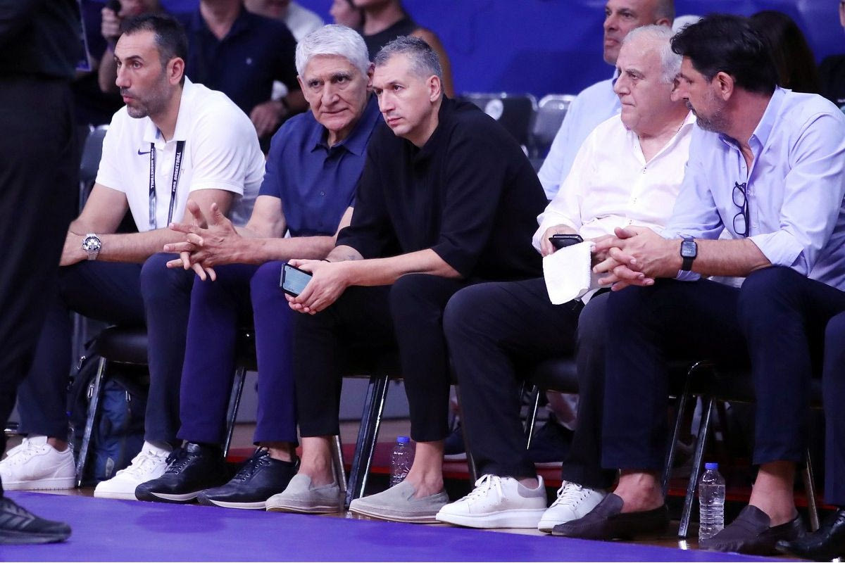 Ο Δήμος Ντικούδης, ο Παναγιώτης Γιαννάκης, ο Δημήτρης Διαμαντίδης και ο Ευθύμης Ρεντζιάς πήραν τις θέσεις τους δίπλα στον αγωνιστικό χώρο για να στηρίξουν την προσπάθεια του αντιπροσωπευτικού μας συγκροτήματος. Δίπλα τους βρέθηκαν ο πρόεδρος της ΕΟΚ, Βαγγέλης Λιόλιος, ο Γενικός Διευθυντής της Ομοσπονδίας, Ντίνος Σβερκούνος, ο Ρικ Πιτίνο και ο πρόεδρος του ΕΣΑΚΕ, Βαγγέλης Γαλατσόπουλος.