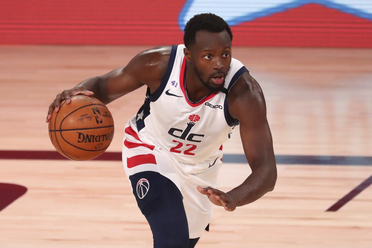 Washington Wizards guard Jerian Grant (22) brings the ball upcourt against the Oklahoma City Thunder during the first half of an NBA basketball game Sunday, Aug. 9, 2020, in Lake Buena Vista, Fla. (Kim Klement/Pool Photo via AP) AP