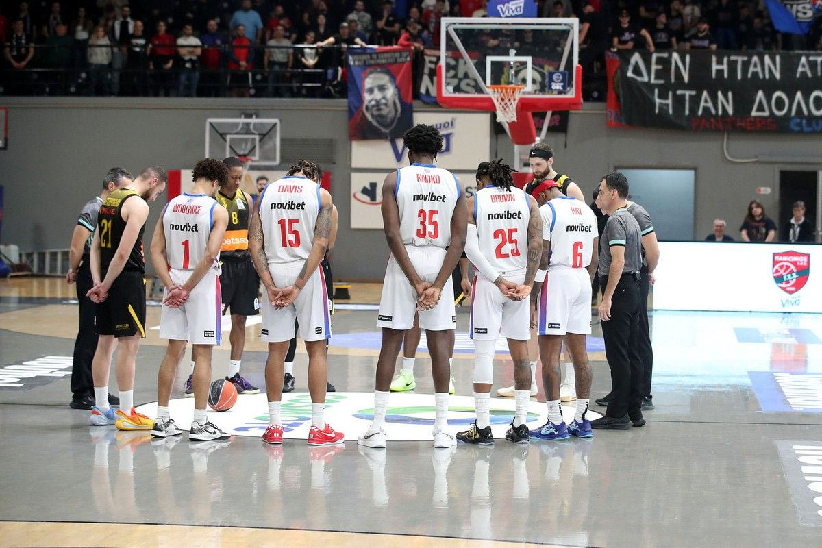 Σιγή ενός λεπτού τηρήθηκε στο κλειστό της Γλυφάδας πριν από το τζάμπολ του αγώνα του Πανιώνιου με την ΑΕΚ Betsson, στη μνήμη των θυμάτων της τραγωδίας των Τεμπών.