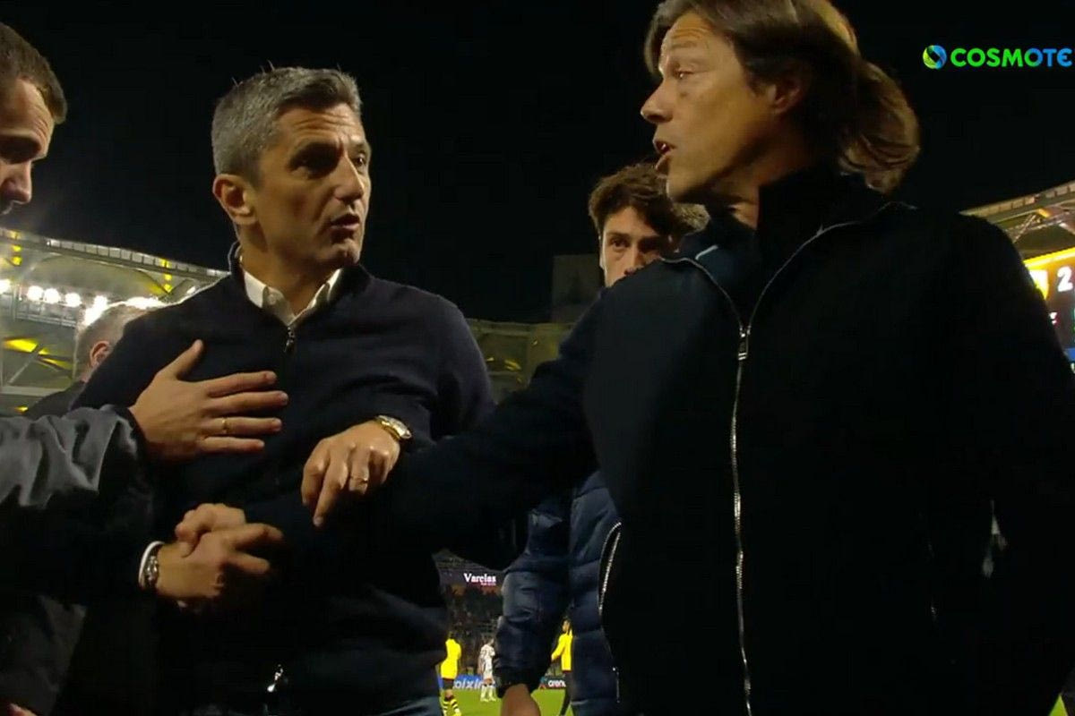 Οι δύο προπονητές είχαν έναν διάλογο σε αρκετά έντονο τόνο καθώς αποχωρούσαν για τα αποδυτήρια, χωρίς πάντως να υπάρξουν άσχημες καταστάσεις.