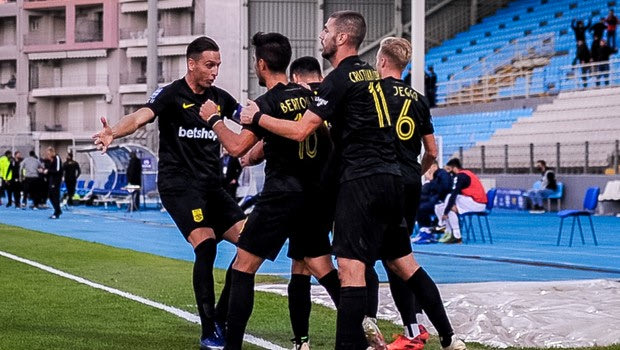 Οι παίκτες του Άρη πανηγυρίζουν γκολ κόντρα στον Απόλλωνα Σμύρνης