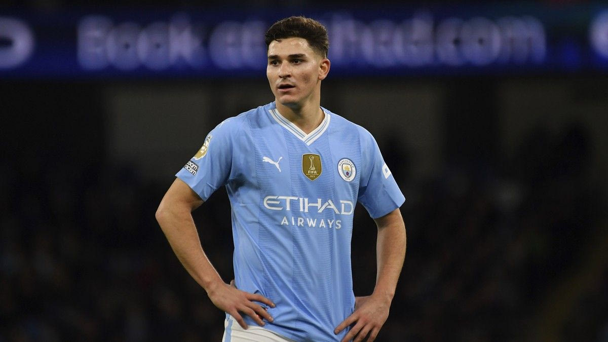 Ο Χούλιαν Άλβαρες με τη φανέλα της Μάντσεστερ Σίτι © 2024 Rui Vieira / AP IMAGES