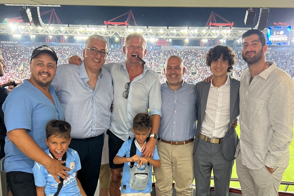 Παρέα με τον πατέρα του Έρλινγκ Χάλαντ, Άλφι, παρακολούθησε ο πρόεδρος του ΟΦΗ, Μιχάλης Μπούσης τον τελικό του Super Cup, ανάμεσα στη Μάντσεστερ Σίτι και τη Σεβίλλη.