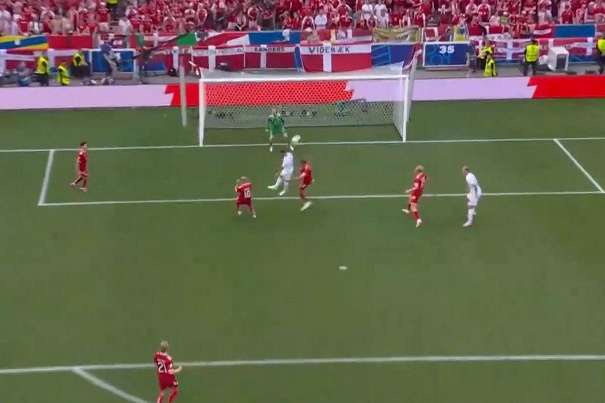 Μετά από μπαλιά στον κενό χώρο, ο Σπόραρ βγήκε από τα αριστερά και έβγαλε καλοζυγισμένη σέντρα στην καρδιά της άμυνας της Δανίας, με τον Τσέριν να πετάγεται στην πορεία της μπάλας αλλά να είναι άτυχος, αφού από την κεφαλιά του η μπάλα έφυγε ελάχιστα έξω από το αριστερό δοκάρι της εστίας του Σμάιχελ.