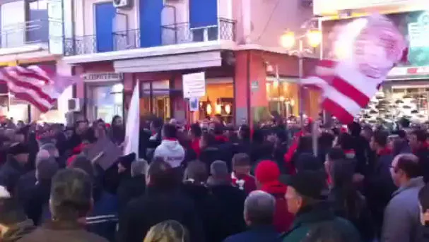Φίλαθλοι όλων των ηλικιών με ερυθρόλευκα κασκόλ και σημαίες διαμαρτυρήθηκαν για την μεταχείριση της Πολιτείας απέναντι στον τοπικό Ολυμπιακό, ενώ έκαναν δυναμική πορεία στους κεντρικούς δρόμους της πόλης χωρίς να συμβεί το παραμικρό.