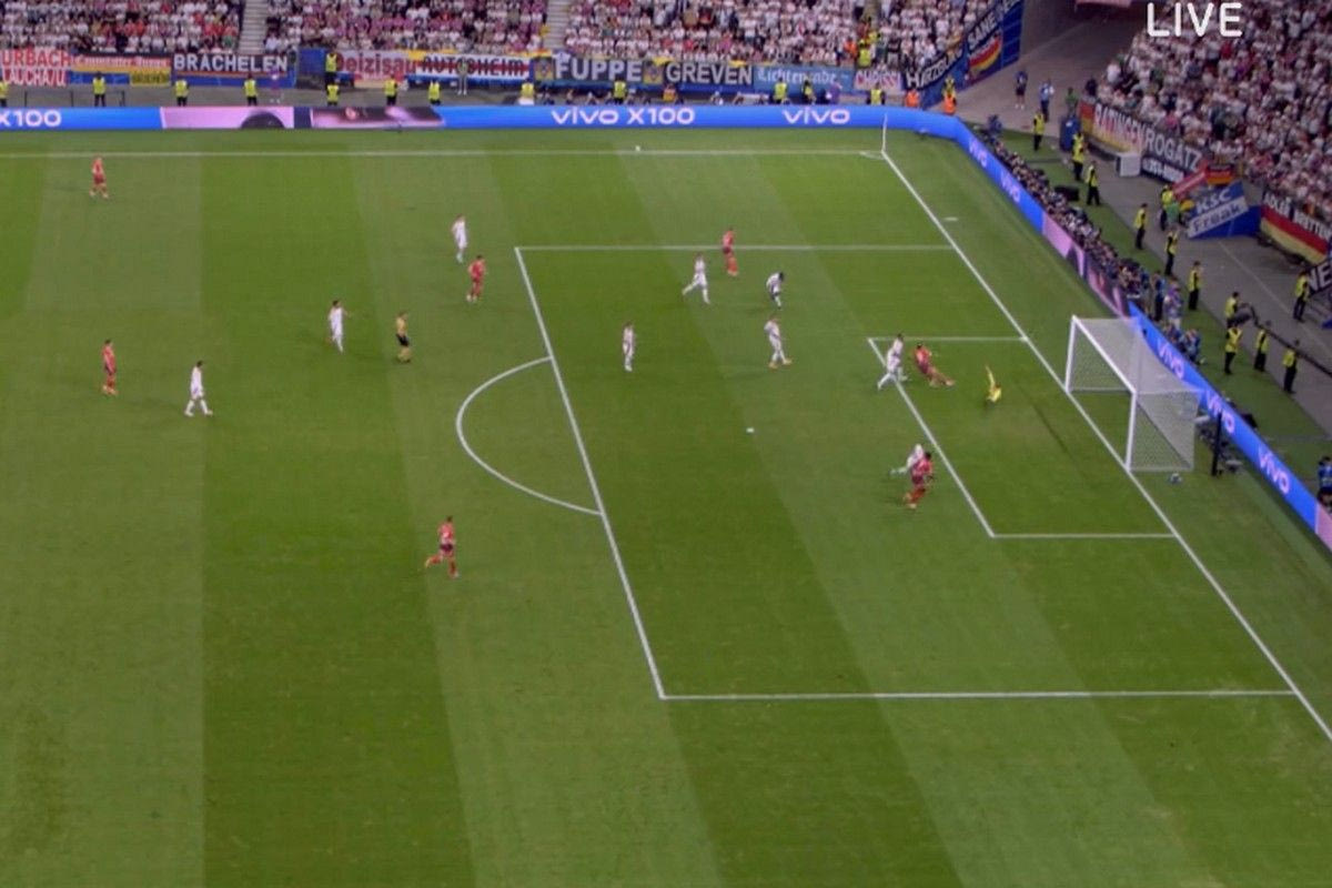 Η Ελβετία άνοιξε το σκορ κόντρα στην Γερμανία στο 28ο λεπτό. Ο Φόιλερ έκανε το γύρισμα από τα αριστερά, ο Εντόι έκανε την κίνηση και άπλωσε το πόδι για να στείλει την μπάλα στα δίχτυα. Μάλιστα, καλυπτόταν οριακά.