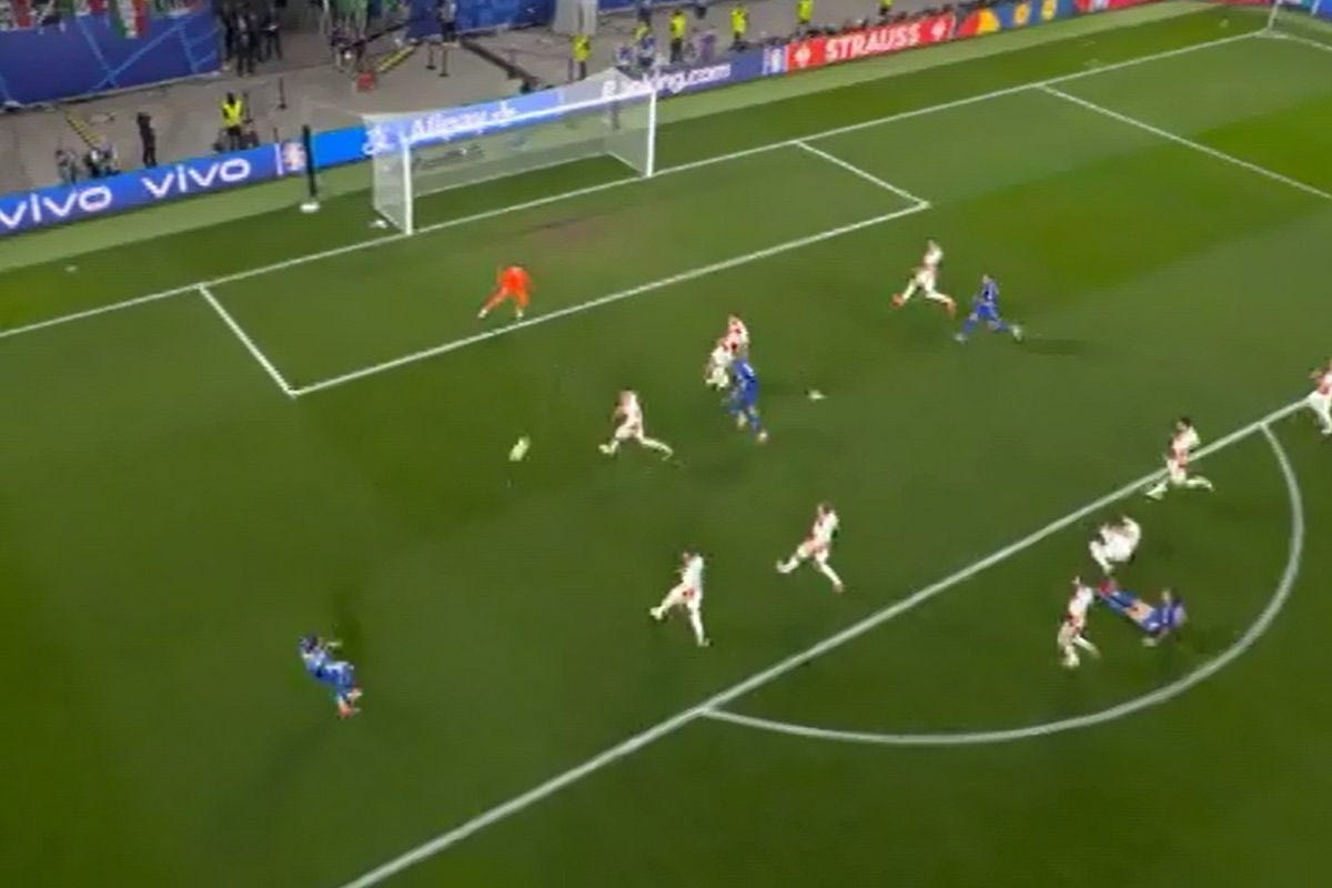 Η Κροατία κρατούσε στα χέρια της το τρίποντο και την πρόκριση κόντα στην Ιταλία, αλλά η Σκουάντρα Ατζούρα έσωσε την παρτίδα στο τέλος. Ο Ρικάρντο Καλαφιόρι με μια εντυπωσιακή ατομική ενέργεια μοίρασε στον Τζακάνι και αυτός με ωραίο τελείωμα έστειλε την μπάλα στα δίχτυα, κάνοντας το 1-1 με το οποίο οι Ιταλοί πήραν την πρόκριση.