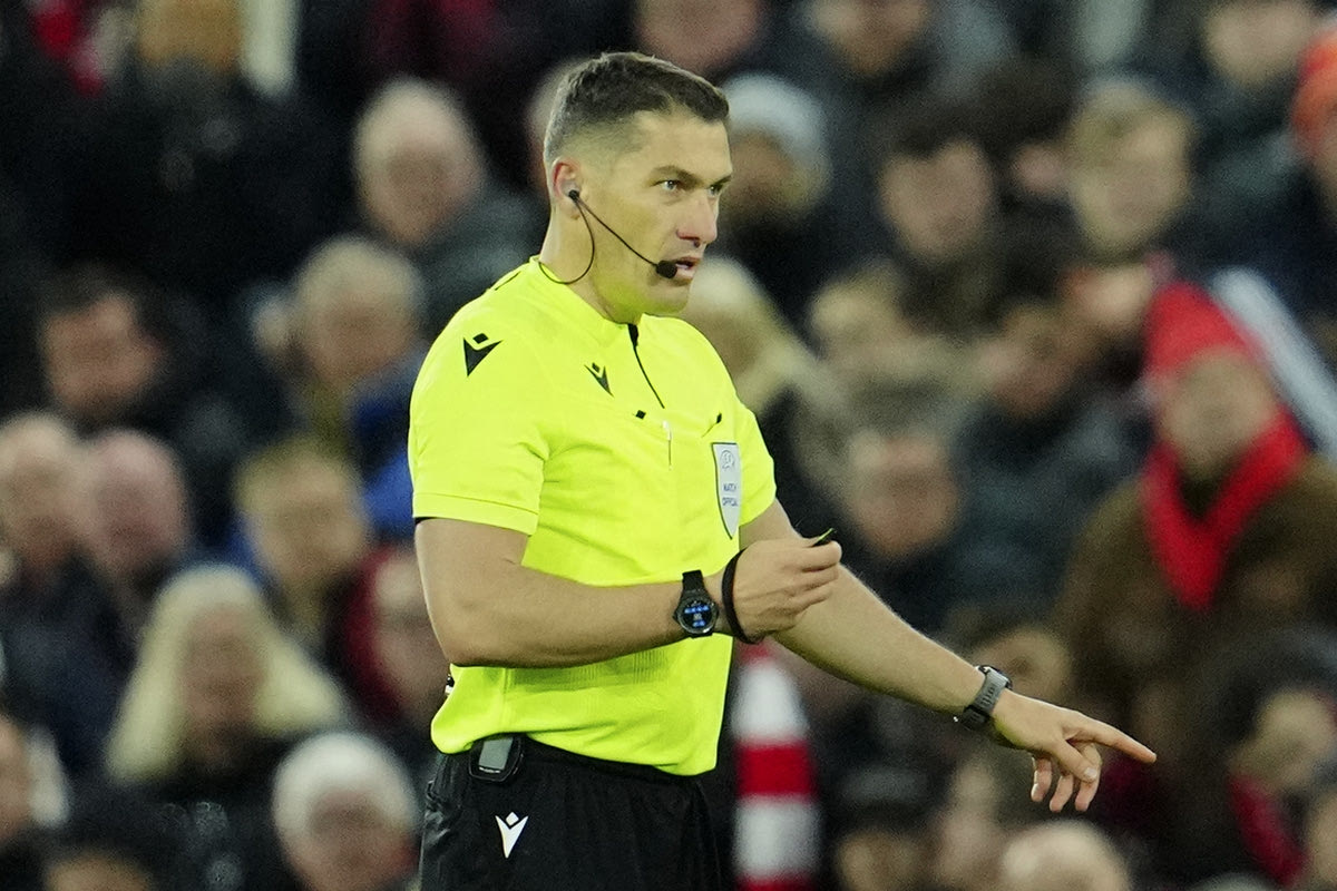 Ο διαιτητής Ίστβαν Κόβατς σε στιγμιότυπο της αναμέτρησης της Λίβερπουλ με τη Ρεάλ για τη φάση των 16 του Champions League 2022-2023 στο "Άνφιλντ", Λίβερπουλ | Τρίτη 21 Φεβρουαρίου 2023