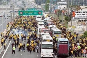 Στις 16.00 ξεκίνησαν τα πρώτα πούλμαν, πέρασαν τη γέφυρα της Βαρυμπόμπης με τους πρώτους οπαδούς του Άρη να φτάνουν την επόμενη ώρα στον προορισμό τους.
