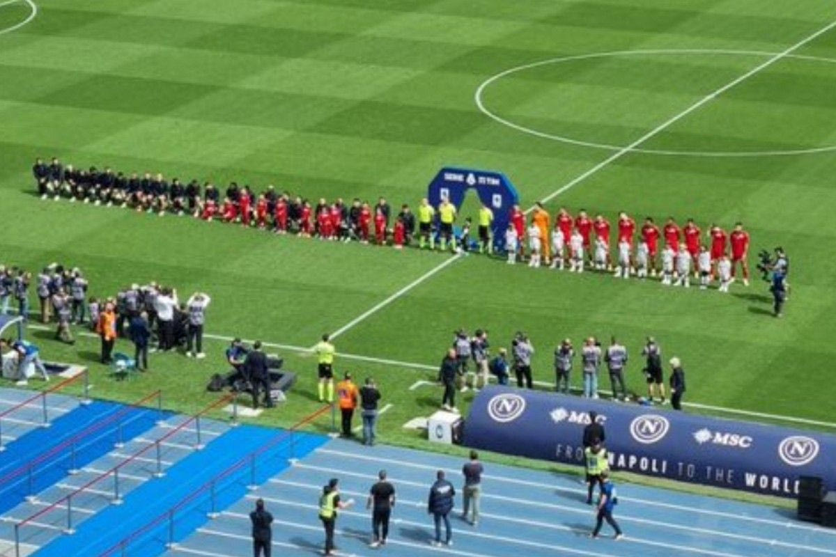 Αυτό έγινε πριν από τη σέντρα του αγώνα, με τους παίκτες της Αταλάντα να είναι παραταγμένοι όρθιοι στη σέντρα, ως είθισται, την ώρα της ανάκρουσης του ύμνου στην Serie A και εκείνους της Νάπολι, να γονατίζουν στο χορτάρι, θέλοντας να στείλουν μήνυμα πως είναι κατά των διακρίσεων, οποιουδήποτε είδους.