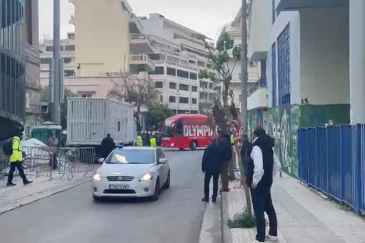 Λίγο πριν τις 19.30 έφτασε η αποστολή του Ολυμπιακού στο γήπεδο της Λεωφόρου για το ντέρμπι κόντρα στον Παναθηναϊκό (09/04, 21.00, COSMOTE SPORT 1 HD, LIVE SPORT24).