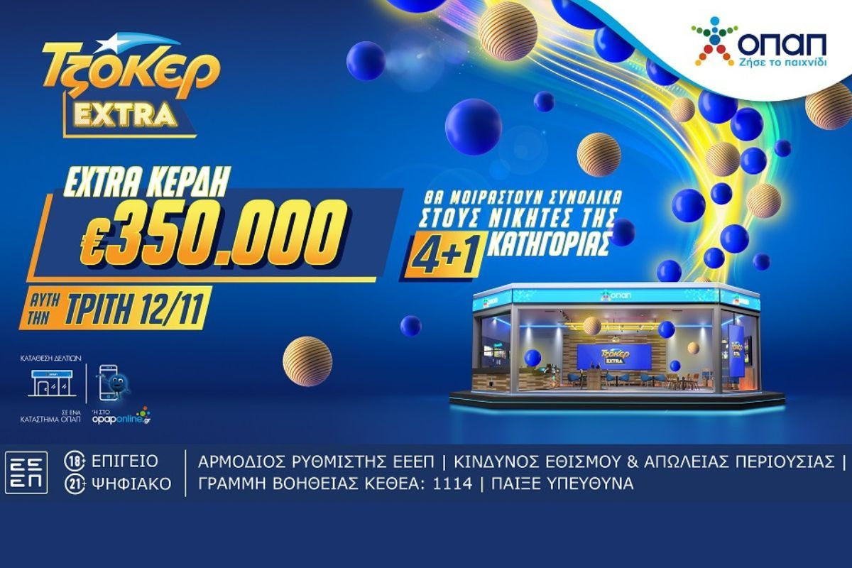 ΤΖΟΚΕΡ Extra: Επιπλέον κέρδη 350.000 ευρώ για τους νικητές της κατηγορίας 4+1 στις κληρώσεις αυτής της εβδομάδας