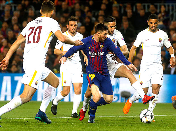 Και ήταν πράγματι, τεράστιο το κέρδος των “culés”, οι οποίοι σε κανένα σχεδόν σημείο του αγώνα – εκτός ίσως για λίγα λεπτά μετά το 2-0 – δε φάνηκαν να νιώθουν άνετα μέσα στον αγωνιστικό χώρο. Δεν υπήρχε η φρεσκάδα και αρκετές φορές το καθαρό μυαλό, στις προσπάθειες της Μπαρτσελόνα, ειδικά από τη στιγμή που αναγκάστηκαν να κάνουν οριζόντιο παιχνίδι και όχι κάθετο, αφού οι Ρωμαίοι είχαν φροντίσει να κλείσουν τους περισσότερους διαδρόμους με συνεχείς αλληλοκαλύψεις και βοήθειες. Ο Μέσι εγκλωβίστηκε στον αμυντικό ιστό των “giallorossi” και βρέθηκε αναγκασμένος να τελειώνει τις φάσεις με το – κακό – δεξί του πόδι, ενώ αρκετές φορές έχασε τη μπάλα από τους τρεις και τέσσερις παίκτες που τον περικύκλωναν, κάθε φορά που προσπαθούσε να διασπάσει – οριζόντια πάντα – κάποια από τις γραμμές τους, προσπαθώντας να βρει διέξοδο για πάσα ή σουτ. Η Ρόμα έκανε το παιχνίδι της σωστά και μεθοδικά, όμως πλήρωσε σε μεγάλο βαθμό την επιλογή της να βάζει μέσα στη μικρή περιοχή σχεδόν όλη της την ενδεκάδα όταν αμυνόταν, με αποτέλεσμα να καταδικαστεί από τις αναπόφευκτες καραμπόλες που έφεραν δυο αυτογκόλ. Ας δούμε όμως με περισσότερες λεπτομέρειες τί έγινε χθες βράδυ στο “Καμπ Νόου” της Βαρκελώνης.