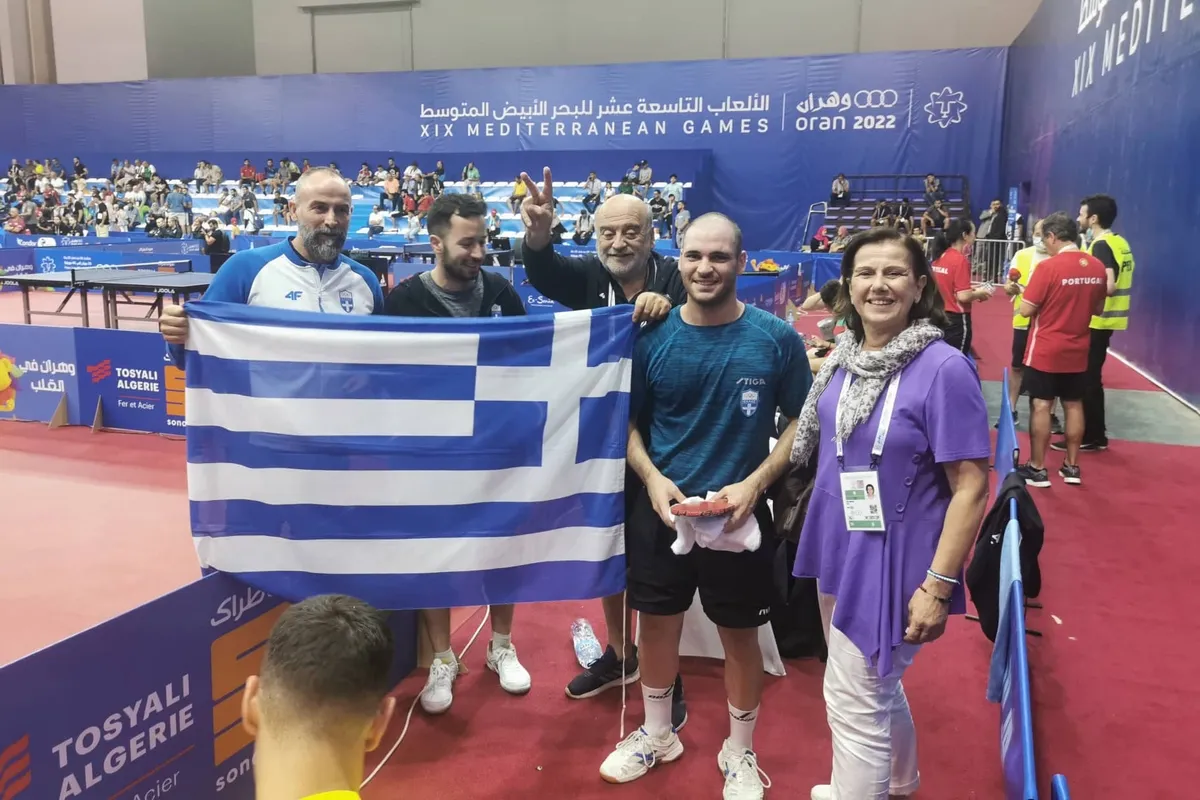 Μία ακόμα ιστορική διάκριση σημείωσε τη Δευτέρα (27/6) το ελληνικό πινγκ πονγκ, με την εθνική ομάδα αντρών στο ομαδικό να επικρατεί στον μικρό τελικό 3-1 επί της Ισπανίας και να κατακτά το χάλκινο μετάλλιο στους 19ους Μεσογειακούς Αγώνες, στο Οράν της Αλγερίας.