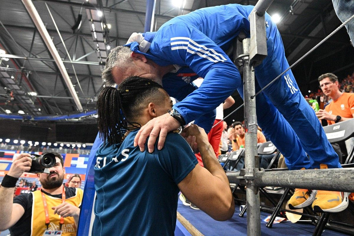 Μετά την ανακοίνωση ότι αυτός και ο Ολλανδός Μένο Φλοον θα μοιραστούν το πρώτο σκαλί του βάθρου, ο 26χρονος Έλληνας έτρεξε αμέσως στον πατέρα του, τον πήρε αγκαλιά και τον φίλησε, σε μία έντονη και συγκινησιακά φορτισμένη στιγμή.