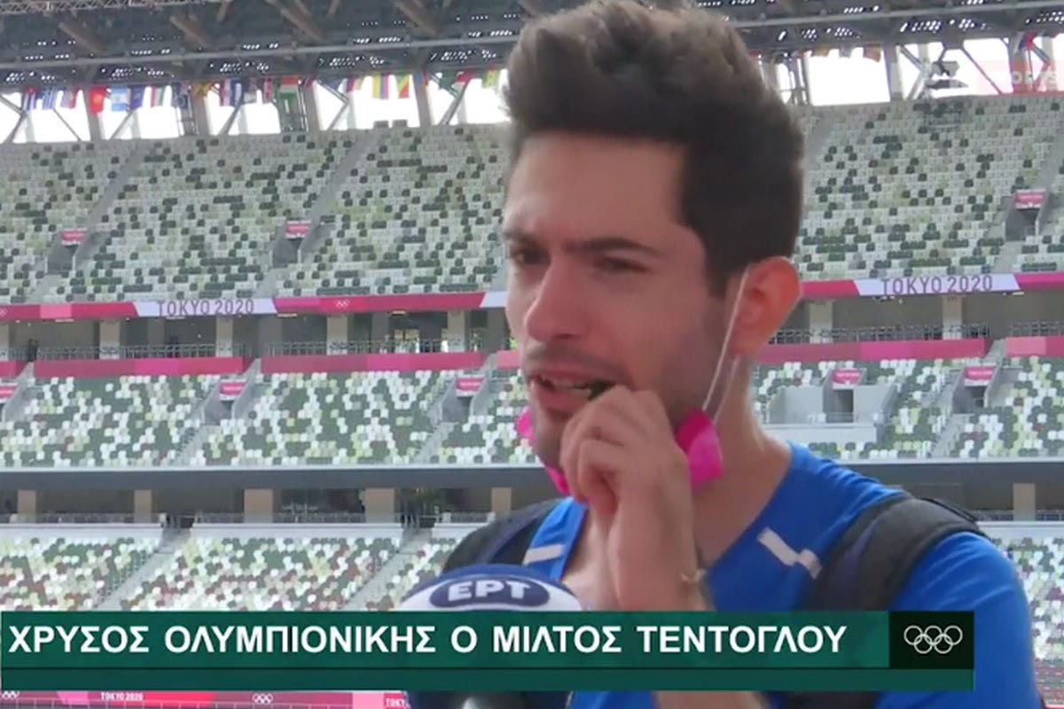 Επικές στιγμές από τον Μίλτο Τεντόγλου την ώρα των δηλώσεων στην κάμερα της ΕΡΤ. Δεν ήξερε τι ώρα είναι η απονομή των μεταλλίων στο μήκος.