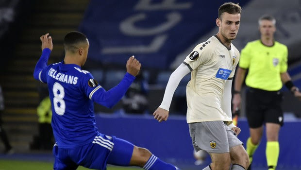 Ο Μιτάι και ο Τίλεμανς δίνουν μάχη για την μπάλα στο Λέστερ - ΑΕΚ