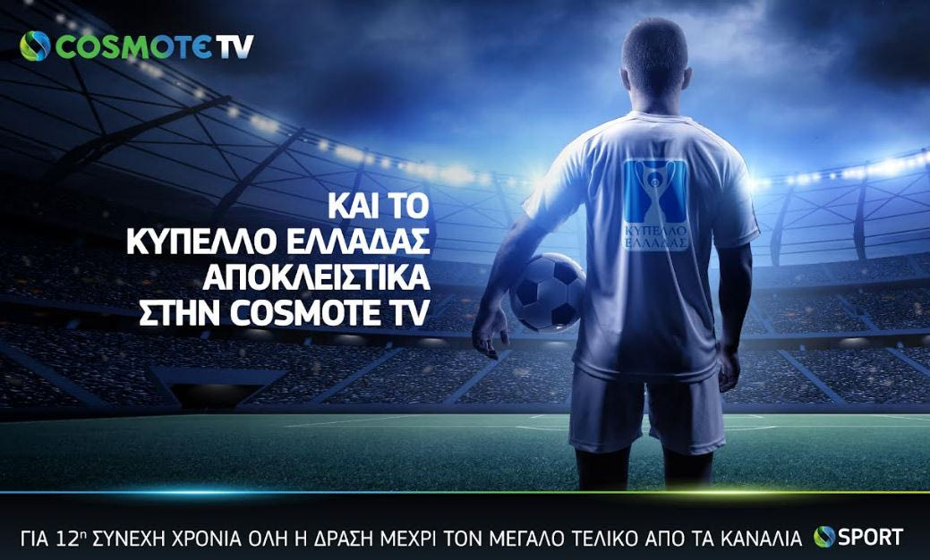 Η COSMOTE TV εξασφάλισε τα αποκλειστικά δικαιώματα μετάδοσης του Κυπέλλου Ελλάδας ποδοσφαίρου, του θεσμού των μεγάλων εκπλήξεων. Για δωδέκατη συνεχή χρονιά, τα κανάλια COSMOTE SPORT θα μεταφέρουν την αγωνιστική δράση, από την 5η φάση μέχρι και τον μεγάλο τελικό. Το Κύπελλο Ελλάδας έρχεται να προστεθεί στο ήδη πλούσιο αθλητικό πρόγραμμα της COSMOTE TV, που περιλαμβάνει περισσότερες από 60 κορυφαίες διοργανώσεις σε ποδόσφαιρο, μπάσκετ, τένις, μηχανοκίνητα και άλλα δημοφιλή αθλήματα και πάνω από 8.000ώρες live μεταδόσεων.