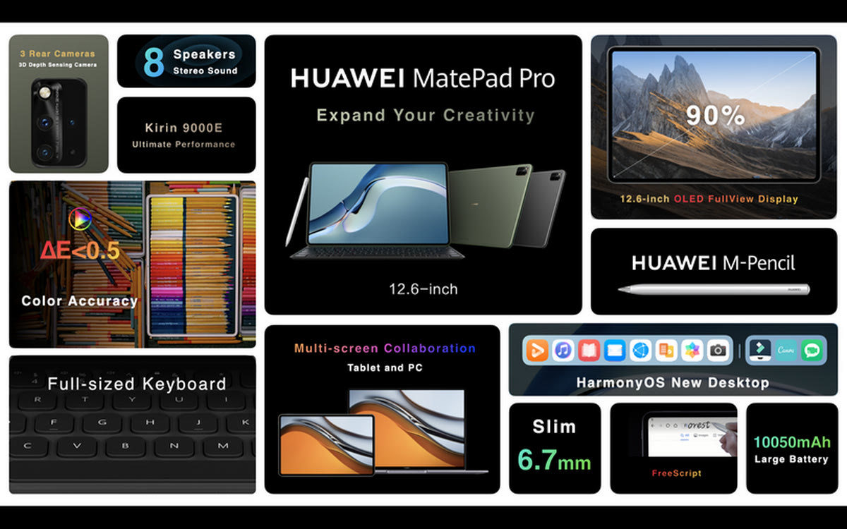 Το νέο HUAWEI MatePad Pro διαθέτει πανέμορφη οθόνη OLED FullView 12,6 ιντσών και αναλογία οθόνης-συσκευής 90% (screen-to-body ratio), που είναι η μεγαλύτερη μεταξύ όλων των tablets της αγοράς. Χάρη στις κατανεμημένες δυνατότητες διαχείρισης δεδομένων και προγραμματισμού εργασιών του HarmonyOS, το HUAWEI MatePad Pro μπορεί να συνεργαστεί απρόσκοπτα με smartphone και υπολογιστές για να διπλασιάσει την παραγωγικότητα και τη δημιουργικότητά του χρήστη εξυπηρετώντας διαφορετικά σενάρια, είτε βρίσκεται στο γραφείο είτε το χρησιμοποιεί ως πίνακα σχεδίασης.