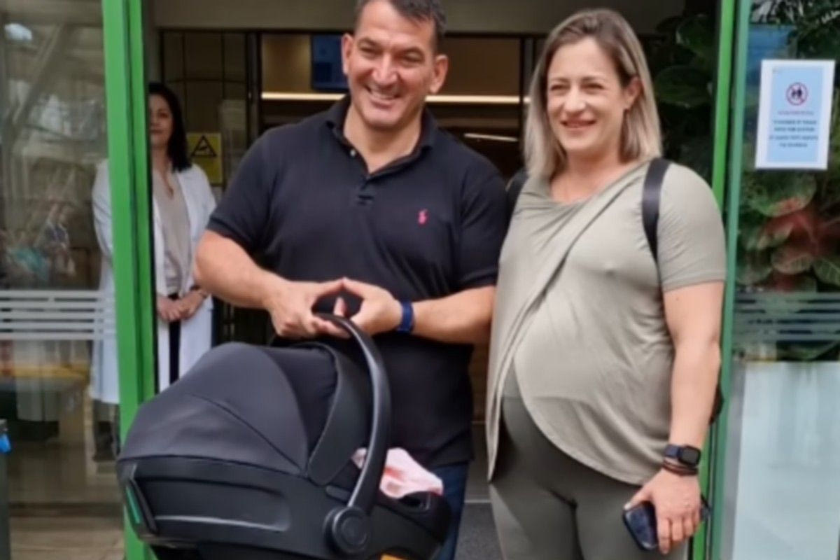 Η σύζυγος του Ολυμπιονίκη μαζί με την νεογέννητη κορούλα τους πήραν εξιτήριο και το ζευγάρι έφυγε από το μαιευτήριο.
