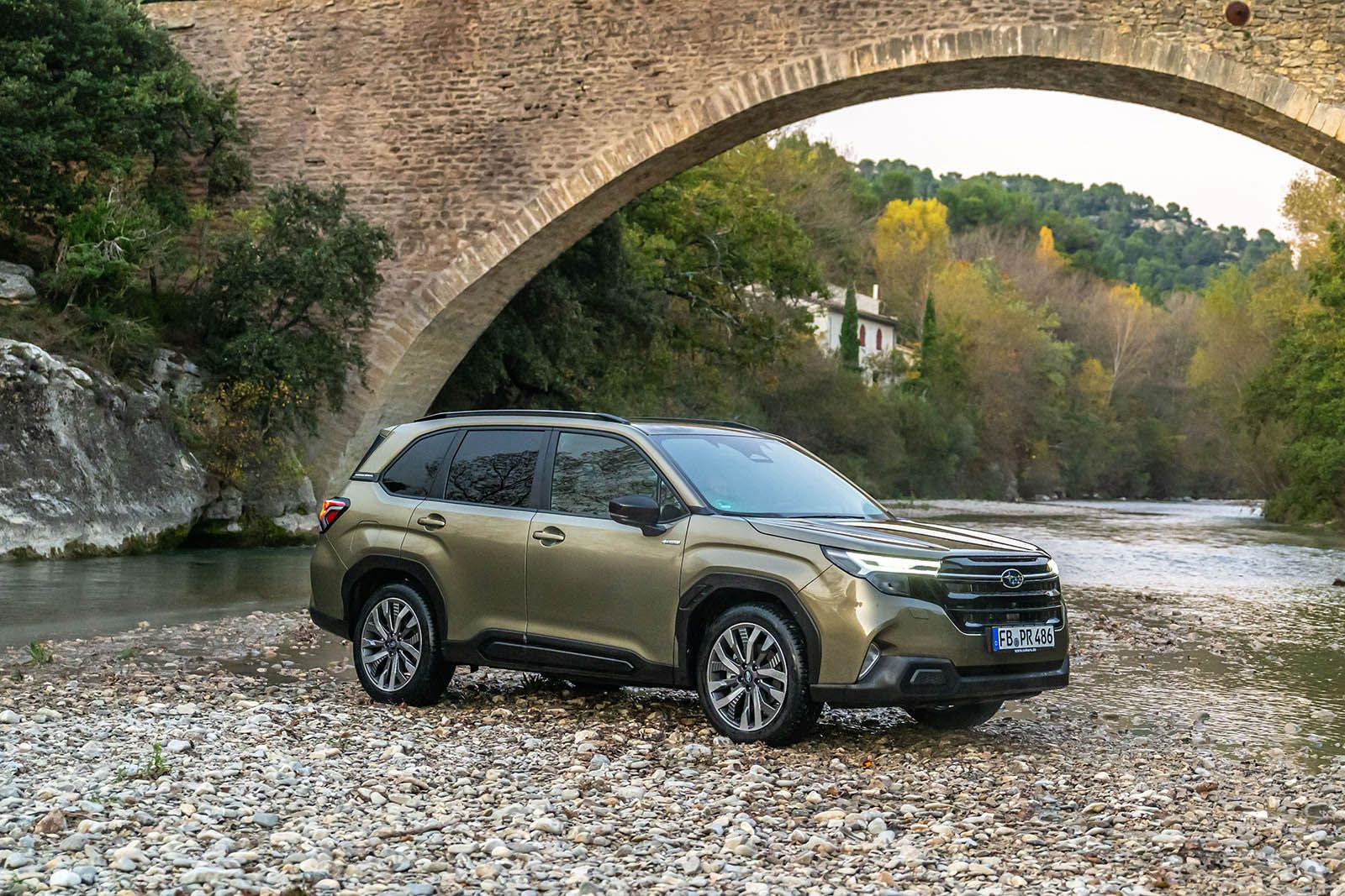 Το εσωτερικό του είναι εξοπλισμένο με νέο σύστημα infotainment στην ψηφιακή οθόνη των 11,6 ιντσών, με συνδεσιμότητα Apple CarPlay και Android Auto, ενώ μια μικρή ψηφιακή οθόνη έχει τοποθετηθεί ανάμεσα στα όργανα. Πίσω από τους επιβάτες, ο χώρος αποσκευών φτάνει τα 508 lt, που γίνονται 1.720 lt με την πτώση των πίσω καθισμάτων. Το υβριδικό κινητήριο σύνολο του Forester έχει στον πυρήνα του τον τετρακύλινδρο κινητήρα βενζίνης 2.0 λίτρων, ο οποίος συνδυάζεται με ένα μικρό ηλεκτροκινητήρα που παίρνει την ενέργειά του από μπαταρία χωρητικότητας 0,57 kWh. Το σύνολο αποδίδει 136 άλογα και 182 Nm ροπή, συνδυαζόμενο με το αυτόματο (CVT) κιβώτιο ταχυτήτω, με μέση (εργοστασιακή) κατανάλωση 8,1 lt/100km.