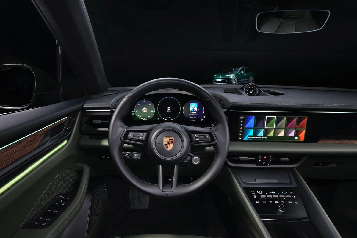Το Porsche Driver Experience προσφέρει έναν συνδυασμό ψηφιακών και αναλογικών στοιχείων. Αυτά περιλαμβάνουν έναν πίνακα οργάνων με κυρτή οθόνη 12,6 ιντσών, μια οθόνη συνοδηγού 10,9 ιντσών, ένα σύστημα head-up display με τεχνολογία επαυξημένης πραγματικότητας και ατμοσφαιρικό φωτισμό. Για άλλη μια φορά, η Porsche αναβάθμισε πλήρως τη σχεδίαση των οθονών για όλα τα μοντέλα Macan.