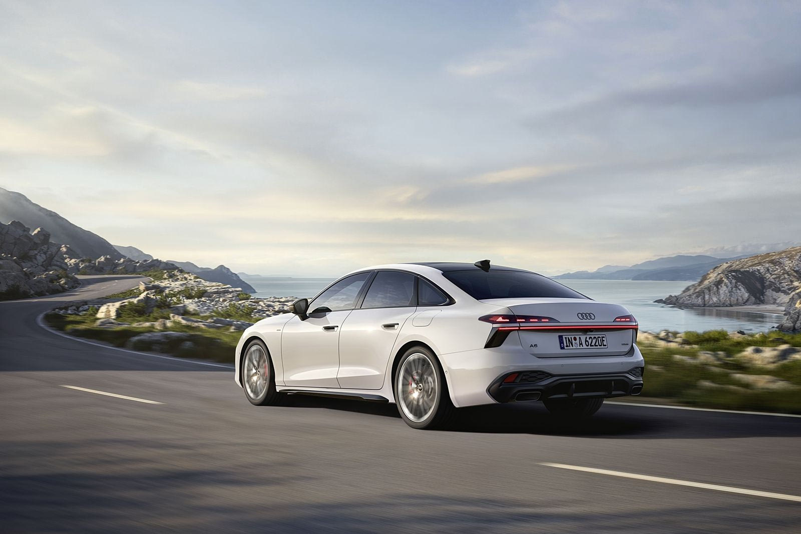 Η ακρίβεια των υπολογιστικών προσομοιώσεων, σε συνδυασμό με τις φυσικές δοκιμές, εξασφάλισε την απόλυτη ισορροπία ανάμεσα στην αισθητική και τη λειτουργία. Το πίσω τμήμα, με την επιμήκη γραμμή και τη χαρακτηριστική ζώνη φωτισμού σε πλήρες πλάτος, εκφράζει τον προοδευτικό χαρακτήρα του A6. Η ελαφρά ανοδική καμπύλη της ουράς και η ενσωματωμένη ακμή στο καπάκι του χώρου αποσκευών εξασφαλίζουν ιδανικό σημείο αποκόλλησης της ροής του αέρα, μειώνοντας δραστικά τις δίνες στο πίσω μέρος.
