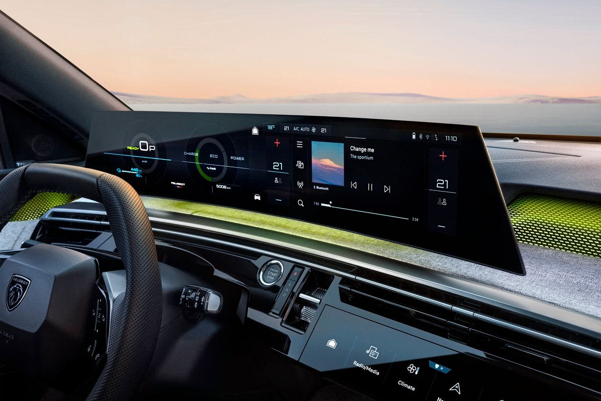 Οι ομάδες της Peugeot αποφάσισαν να ‘παντρέψουν’ δύο από τα τρία θεμελιώδη χαρακτηριστικά γνωρίσματα του i-Cockpit: το head-up display και τη μεγάλη κεντρική οθόνη αφής. Αυτά είναι πλέον ενσωματωμένα σε μια κυρτή πανοραμική οθόνη με ένα μόνο πάνελ υψηλής ευκρίνειας 21 ιντσών, που εκτείνεται από την αριστερή πλευρά του ταμπλό έως την κεντρική κονσόλα.