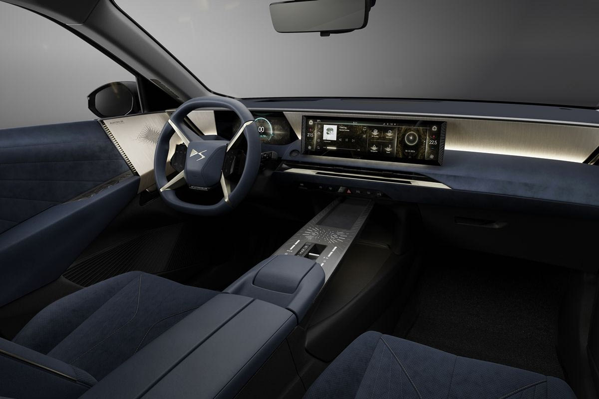 Σχεδιασμένο για να δομεί τα στοιχεία ενώ τα κάνει να αιωρούνται, αποπνέει μια ατμόσφαιρα ηρεμίας και γαλήνης. Οι κάθετες φωτεινές υπογραφές Inner Lightblade, που απηχούν τα εξωτερικά φώτα ημέρας, ζωντανεύουν τα άκρα του ταμπλό και οριοθετούν τη θέση των λαβών. Τα φωτιζόμενα γραφικά της κονσόλας είναι εμπνευσμένα από τον έναστρο ουρανό. Όταν ανοίγουν οι πόρτες, το λογότυπο DS εμφανίζεται στον πίνακα οργάνων των 10,25″.