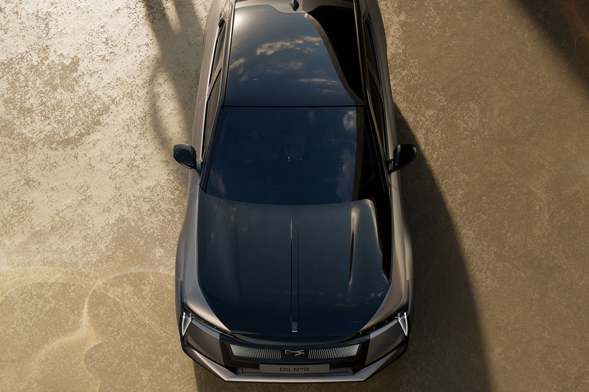 Το περίτεχνο σχήμα του αμαξώματος του DS N°8 βοηθά στη ροή του αέρα. Βασισμένο σε γενναιόδωρο μεταξόνιο 2,90 μ και απόσταση από το έδαφος στα 15,5 εκατοστά, το DS N°8 βελτιστοποιεί τη ροή του αέρα γύρω του, στοιχείο που συμβάλλει αποφασιστικά στην εμφάνιση της εκπληκτικής αυτονομίας που φτάνει έως και τα 750 χλμ με μια φόρτιση (κατά WLTP). Οι ηλεκτρικές χωνευτές λαβές θυρών στο μπροστινό μέρος είναι βαμμένες στο χρώμα του αμαξώματος, ενώ οι πίσω λαβές των θυρών είναι ενσωματωμένες στις κολόνες των θυρών.