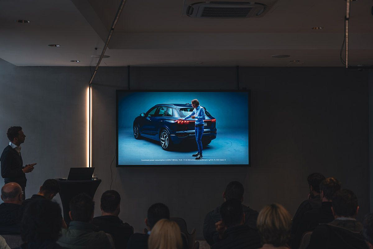 Στη Βιέννη παρακολουθήσαμε ένα εργαστήριο σχετικά με τις νέες τεχνολογίες του Q6 e-tron, μάλιστα με την άκρως εντυπωσιακή τρισδιάστατη απεικόνισή τους στο χώρο με τα ειδικά γυαλιά της τεχνολογίας Apple Vision pro. Αυτή εμφανίζει όλα τα επιμέρους εξαρτήματα του αυτοκινήτου να αιωρούνται μέσα στον κατά τα άλλα απαράλλαχτο χώρο που βρίσκεται ο χρήστης.