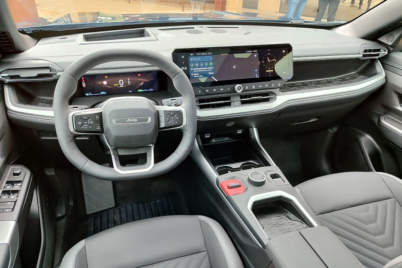 Στο εσωτερικό, το νέο Compass κάνει ένα διακριτικό άλμα προς την πολυτέλεια, ενώ την ίδια στιγμή, αναδεικνύει την πιο σκληροπυρηνική του πλευρά. Η νέα οθόνη αφής 12,3 ιντσών με σύστημα Uconnect 5 προσφέρει καλύτερη απόκριση, νέες δυνατότητες συνδεσιμότητας (Wi-Fi hotspot, Amazon Alexa, φωνητικές εντολές), καθώς και over-the-air ενημερώσεις. Ο ψηφιακός πίνακας οργάνων 10,25″ προβάλλει εξατομικεύσιμες ενδείξεις, ενώ διαθέσιμο είναι και το ηχοσύστημα με τα 9 ποιοτικά ηχεία και το subwoofer. Ορισμένες από τις αισθητικές λεπτομέρειες που συνοδεύουν τα χαρακτηριστικά του μοντέλου, το κάνουν να μοιάζει τελείως “ξένο” ως προς τη γραμμή παραγωγής του Ομίλου.