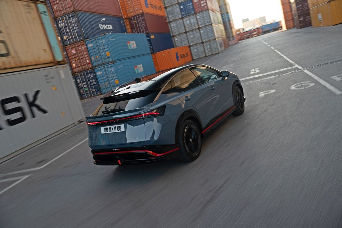 Ένας νέος μπροστινός διαχωριστής με γεννήτριες στροβιλισμών, εκτεταμένους κάτω προφυλακτήρες, διπλό διαχύτη και πίσω αεροτομή ducktail συμβάλλουν στη μείωση του αεροδυναμικού συντελεστή κατά ένα εντυπωσιακό 40%, επιτυγχάνοντας CL 0,11 έναντι CL 0,18 για το “απλό” Ariya. Εν τω μεταξύ, οι μοναδικές ζάντες ENKEI με ανάγλυφο “NISMO” 20 ιντσών συνδυάζονται με ειδικά ελαστικά Michelin Pilot Sport EV για να προσφέρουν αυξημένη πρόσφυση και ασφάλεια στο δρόμο, ενώ παράλληλα μειώνουν τη μάζα και βελτιώνουν την ψύξη των φρένων.
