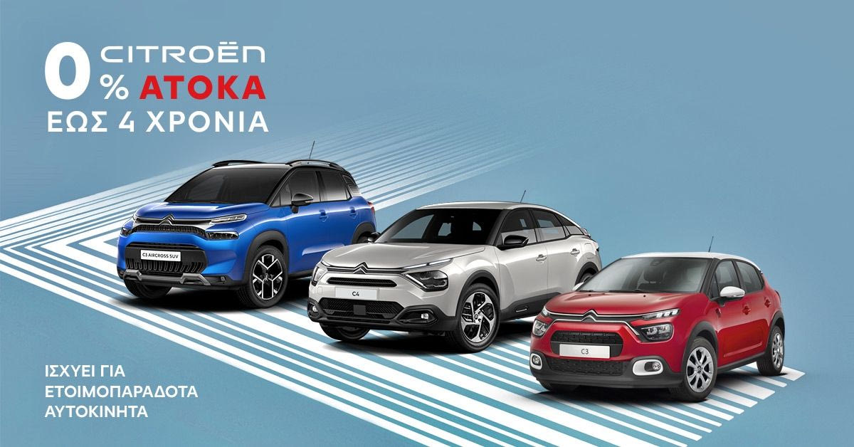 Το πρόγραμμα ισχύει για τα μοντέλα C3, C3 Aircross, C4, C4X & C5 Aircross και αφορά ετοιμοπαράδοτα αυτοκίνητα. Η καινοτομία της Citroen δεν εξαντλείται όμως στο άτοκο πρόγραμμα χρηματοδότησης. Η μάρκα, πιστή στη φροντίδα των καταναλωτών της προσφέρει 5ετή εργοστασιακή εγγύηση και οδική βοήθεια σε όλη την γκάμα των επιβατικών της μοντέλων.