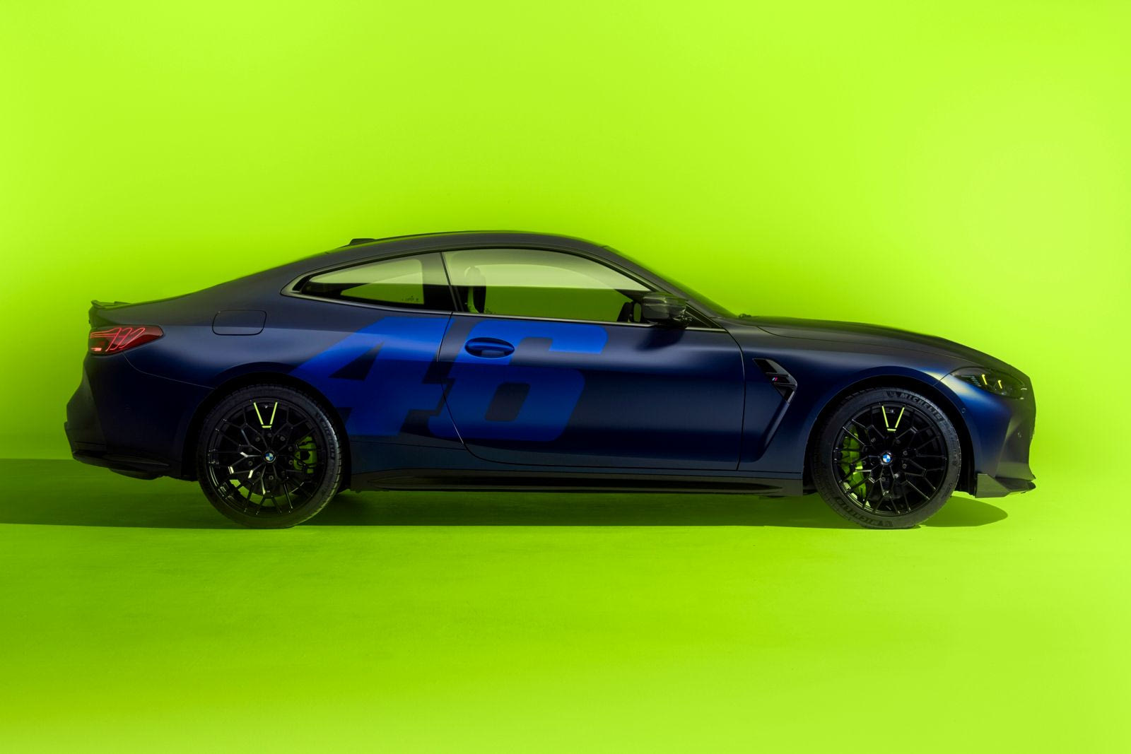 Στη σχεδιαστική παραλλαγή “Style”, το αμάξωμα διατίθεται σε ματ μεταλλικό φινίρισμα Frozen Tanzanite Blue, με το “46” αυτή τη φορά σε μεταλλικό Frozen Marina Bay Blue και στις δύο πλευρές. Αποτίνοντας φόρο τιμής στον αγαπημένο χρωματικό συνδυασμό του Rossi, το περίγραμμα της μάσκας νεφρών της BMW M και μία από τις ακτίνες σχήματος V στις σφυρήλατες ζάντες ελαφρού κράματος M -η οποία, όπως και στα αγωνιστικά αυτοκίνητα, υποδεικνύει τη θέση της βαλβίδας του ελαστικού– είναι βαμμένες σε έντονο κίτρινο χρώμα, όπως και οι δαγκάνες των φρένων με το λογότυπο M και η διακοσμητική λωρίδα πάνω από τα πλαίσια των θυρών της έκδοσης “Sport”.