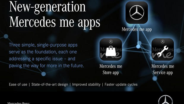 Πρόσβαση στο ψηφιακό οικοσύστημα των αυτοκινήτων Mercedes-Benz με τρεις εφαρμογές: Mercedes me, Mercedes me Store και Mercedes me Service οι οποίες είναι διαθέσιμες, τόσο από το App Store όσο και από το Google Play Store, σε περισσότερες από 35 χώρες, συμπεριλαμβανομένης και της Ελλάδας.