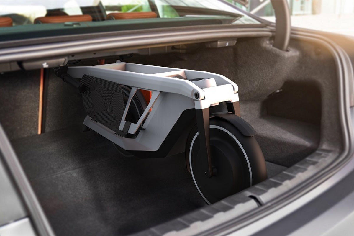 Με το Concept CLEVER COMMUTE, το BMW Group παρουσιάζει τώρα ένα e-scooter που αναδιπλώνεται εύκολα για να μεταφέρεται σε δημόσιο μέσο μεταφοράς ή και από το αυτοκίνητο. Σε ‘public transport mode’, αναδιπλώνονται τα πλαϊνά τμήματα του πατώματος και ο πίσω τροχός (που καλύπτει το κενό που δημιουργούν). Αυτός ο μηχανισμός μειώνει σημαντικά το μεταξόνιο του CLEVER COMMUTE για να μπορεί να μεταφέρεται ακόμα και σε κυλιόμενες σκάλες χωρίς δυσκολία. Σε αυτή τη διάταξη το e-scooter παραμένει ικανό να ρολάρει, σαν μια βαλίτσα. Επίσης, ο ηλεκτροκινητήρας στον εμπρός τροχό, προσφέρει υποβοήθηση στο CLEVER COMMUTE, σε μια ανηφορική ράμπα. Χάρη στις συμπαγείς διαστάσεις του e-scooter όταν αναδιπλώνεται μπορεί να μεταφερθεί σε όλα τα μέσα δημόσιας μεταφοράς δωρεάν.