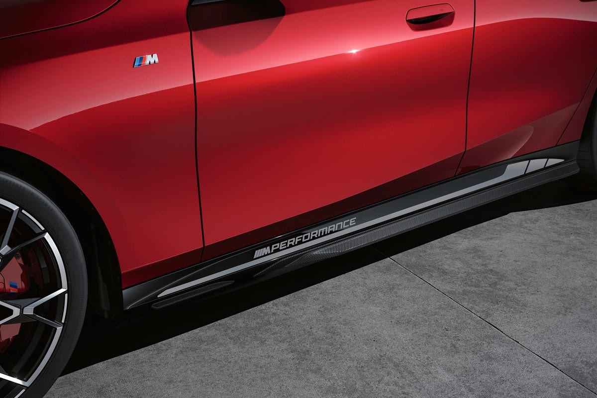 Οι μεμβράνες βρίσκονται κάτω από τις πόρτες και προσφέρουν μια κομψή χρωματική πινελιά, ειδικά στις μαύρες πλαϊνές ποδιές. Η εντυπωσιακή διακοσμητική λωρίδα εναρμονίζεται επίσης τέλεια με την χαρακτηριστική λωρίδα M Performance σε Frozen Black και τα εξαρτήματα των πλαϊνών ποδιών M Performance Carbon.