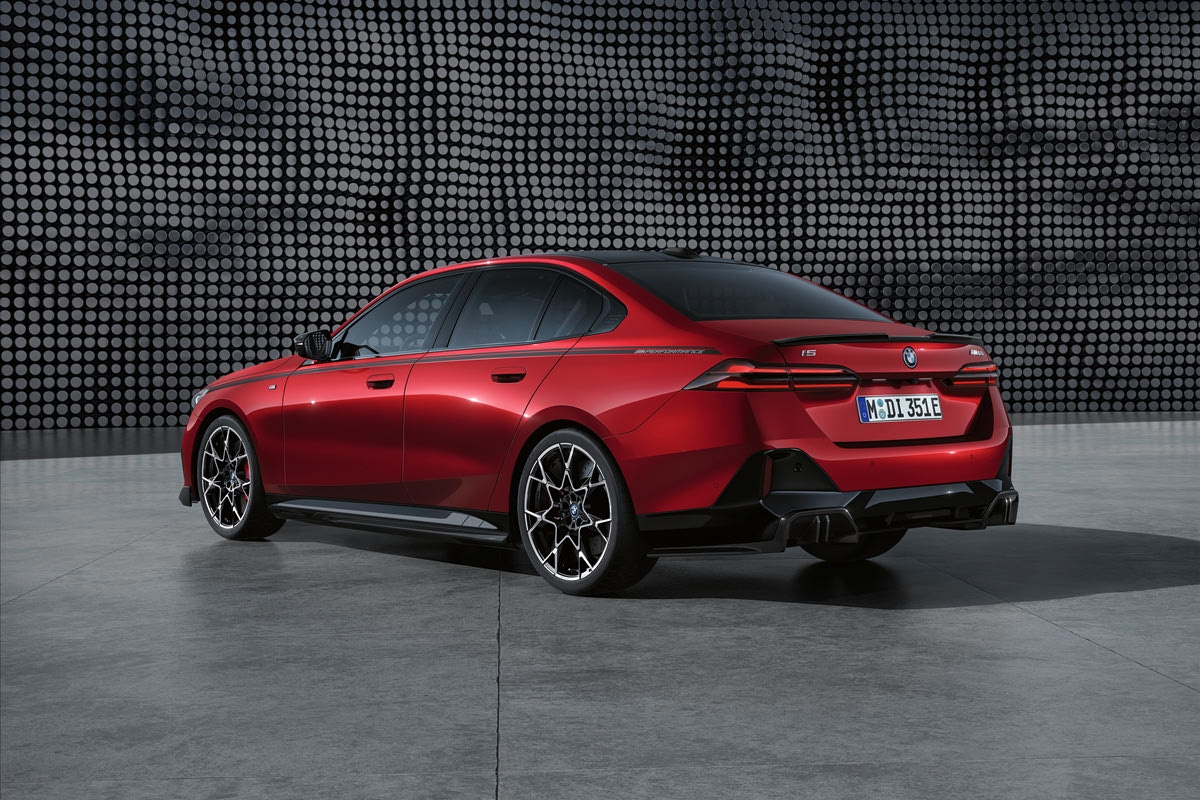 Προαιρετικά διατίθεται επίσης μία πίσω αεροτομή M Performance, έτοιμη να βαφτεί στο χρώμα της αρεσκείας του ιδιοκτήτη. Εκτός από τις πλαϊνές ποδιές M Performance Carbon, οι οποίες προσδίδουν στο προφίλ του οχήματος ακόμα περισσότερο οπτικό μήκος και βάθος, οι νέες χαρακτηριστικές λωρίδες M Performance σε Frozen Black τονίζουν τις δυναμικά ρέουσες γραμμές της νέας BMW Σειράς 5 Sedan και της νέας BMW i5.