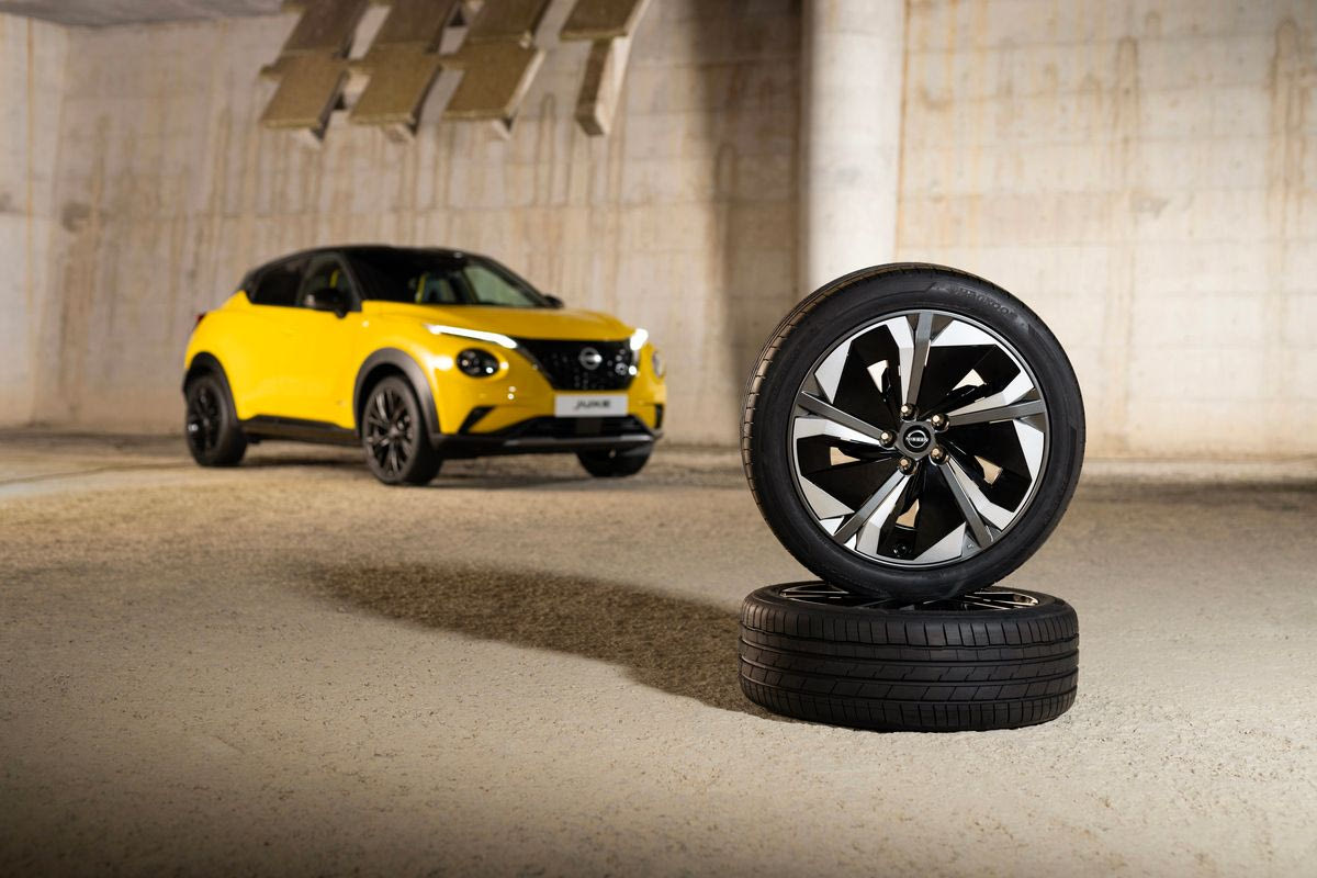 Νέες επιλογές ζαντών είναι τώρα διαθέσιμες στο Juke στις τρεις κορυφαίες κατηγορίες της σειράς. Κάθε κατηγορία έχει μια τυπική επένδυση τροχών, καθώς και μια προαιρετική εναλλακτική λύση. Οι τροχοί στο N-Connecta και στο N-Design είναι νέοι και ο καθένας έχει σχέδιο πέντε ακτίνων, αλλά τα σχέδια είναι μοναδικά για κάθε έκδοση, με διαφορετική τεχνική, γωνιακή εμφάνιση.