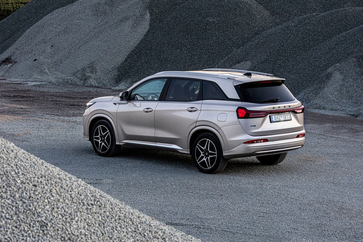 Το κορυφαίο DFSK E5 (από 34.500 ευρώ) έχει άπλετο εσωτερικό χώρο, στάνταρ 7θέσια διαμόρφωση καμπίνας, και ένα προηγμένο σύστημα plug-in hybrid. Διαθέτει ένα ηλεκτρικό σύστημα κίνησης 177 ίππων, το οποίο προσφέρει την αθόρυβη, γραμμική και οικονομική λειτουργία ενός ηλεκτρικού αυτοκινήτου στις καθημερινές μετακινήσεις, εξασφαλίζοντας αμιγώς ηλεκτρική αυτονομία 70 χιλιομέτρων.