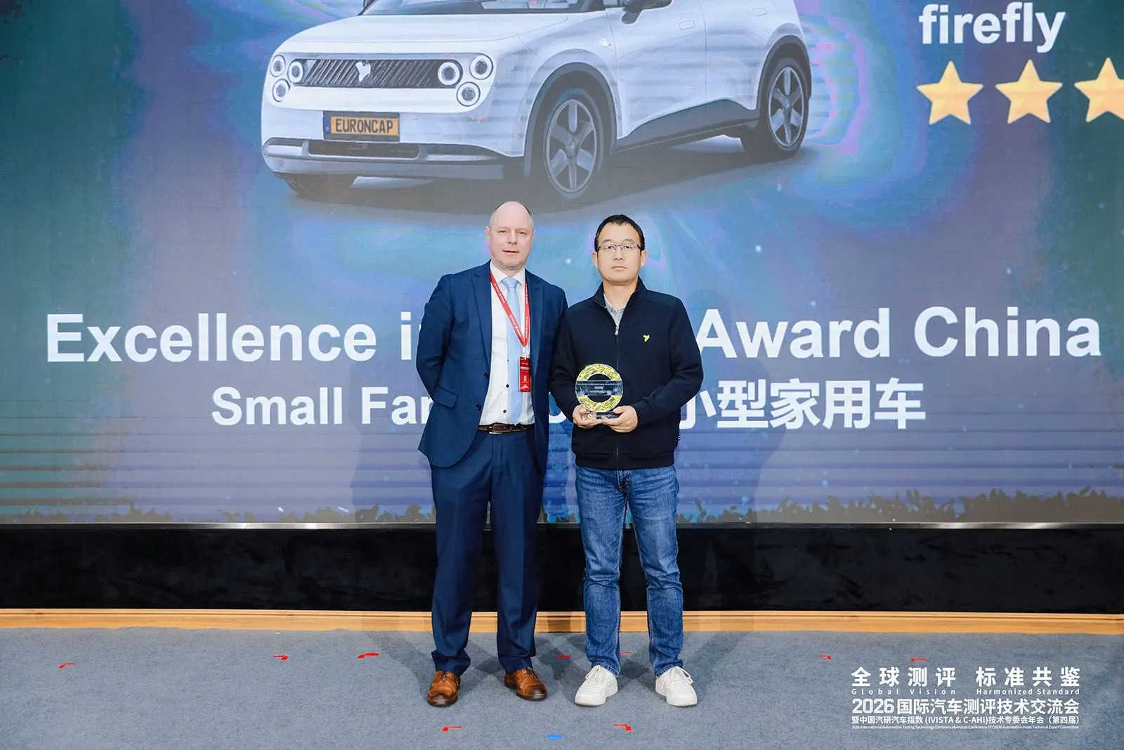 O παγκοσμίως αναγνωρισμένος οργανισμός αξιολόγησης ασφάλειας Euro NCAP πραγματοποίησε στις 23 Απριλίου 2026 την πρώτη του τελετή απονομής βραβείων στην Κίνα, αναγνωρίζοντας τα κορυφαία κινεζικά μοντέλα σε θέματα ασφάλειας σε διάφορες κατηγορίες. Με την εξαιρετική του επίδοση στην ασφάλεια, το firefly ξεχώρισε κατακτώντας την πρώτη θέση στην κατηγορία Small Family Car.