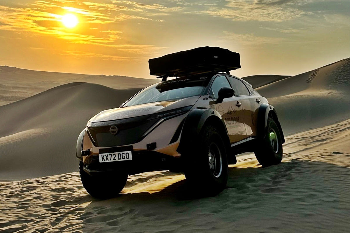 Με κατεύθυνση προς τα περουβιανά σύνορα, καλύπτοντας 327 χιλιόμετρα, το Nissan Ariya e-4ORCE αντεπεξήλθε εύκολα και σε αυτήν την πρόκληση, μεταφέροντας επιπλέον 260 κιλά και μια σκηνή στην οροφή του. Η οδήγηση στο Pan American highway ήταν εύκολη δουλειά για το Expedition Ariya, ενώ στη συνέχεια βγαίνοντας στους αμμώδεις δρόμους της ερήμου, το χάλκινο χρώμα του αυτοκινήτου καμουφλαρίστηκε στα εκπληκτικά χρυσαφένια τοπία.