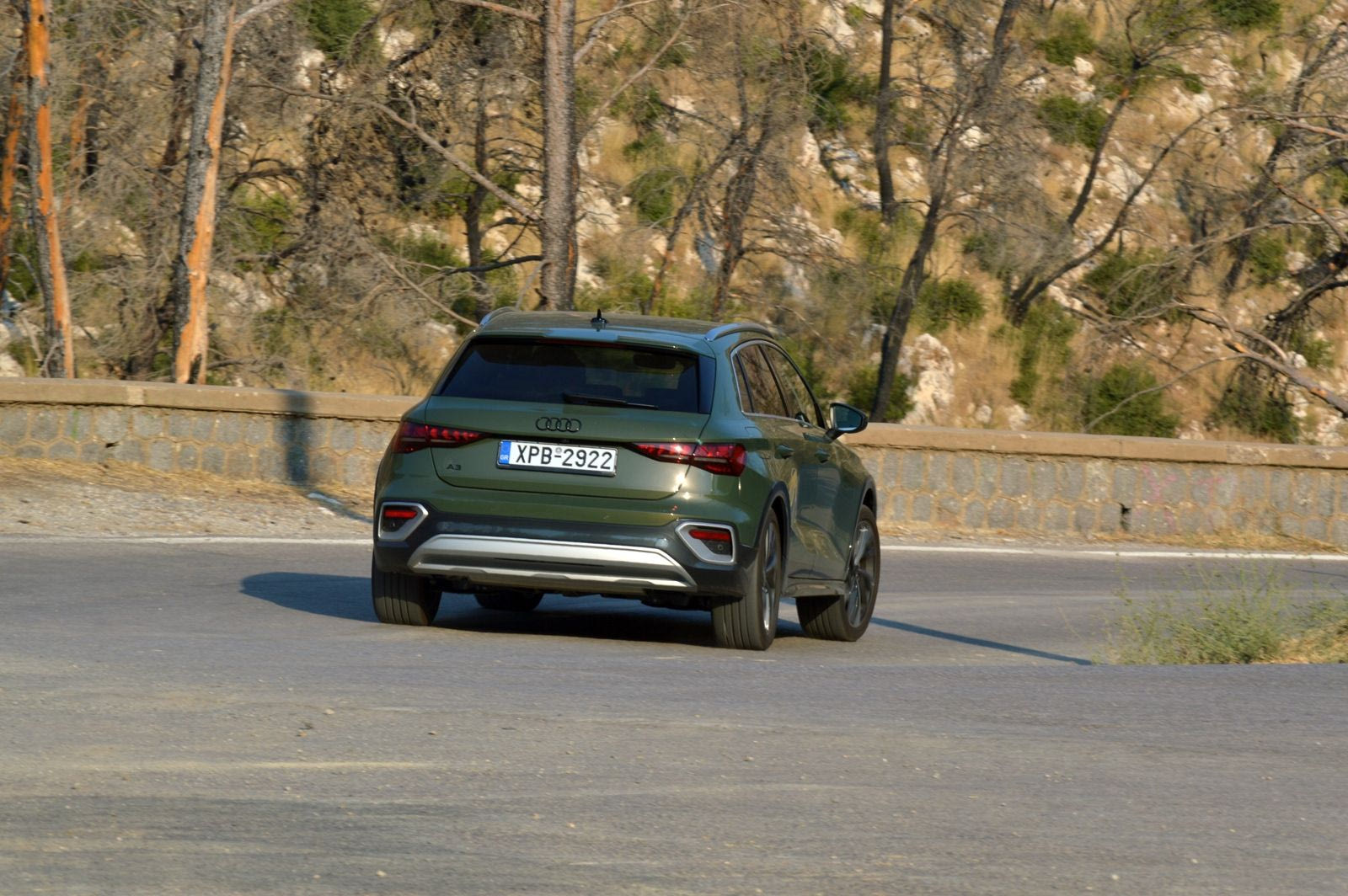 Το αυξημένο ύψος από το έδαφος (κατά 2,1 εκατοστά) δίνει στο Allstreet έναν ελαφρώς πιο “μαλακό” χαρακτήρα στην κύλιση σε σχέση με το απλό A3. Οι αναρτήσεις απορροφούν πιο ήπια τις εγκάρσιες ανωμαλίες, ενώ οι ψηλότερες προδιαγραφές ελαστικών προσφέρουν ένα μικρό έξτρα μαξιλάρι άνεσης. Το πλαίσιο παραμένει στιβαρό, το τιμόνι γρήγορο και ακριβές, και η γενική αίσθηση στην επαρχιακή διαδρομή παραμένει τυπική Audi.