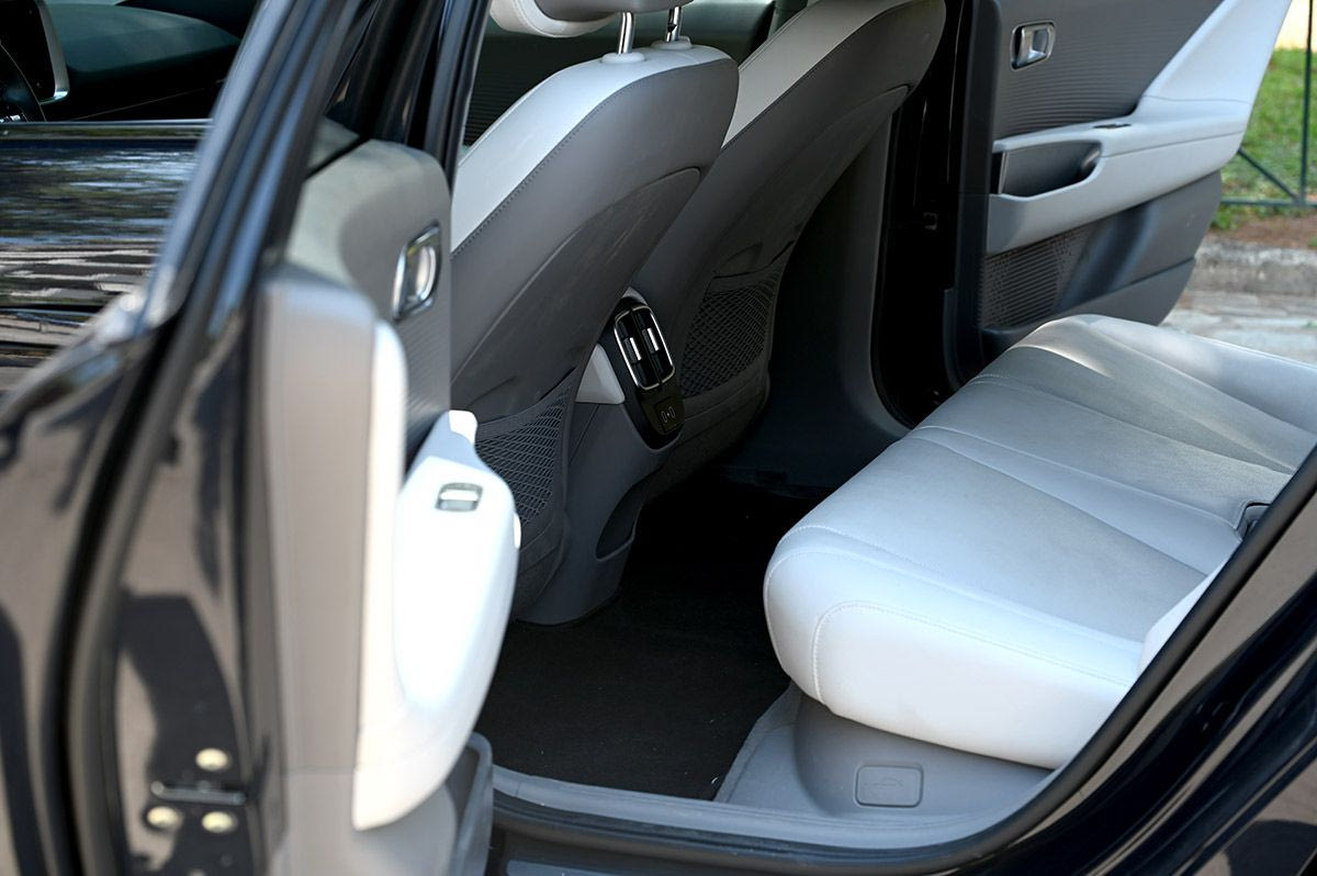 Τέλος, η τεχνολογία της αρχιτεκτονικής E-GMP επιτρέπει και την αμφίδρομη φόρτιση (Vehicle to Load – V2L), που σημαίνει ότι μπορείτε να συνδέσετε οποιαδήποτε συσκευή στην πρίζα που βρίσκεται κάτω από τα πίσω καθίσματα, για να τη φορτίσετε.